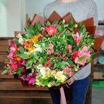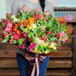 Роскошный букет из 51 разноцветной альстромерии покорит сердце любой девушки. Подарив ей такой роскошный букет – поверьте – он будет во всех соц сетях и о Вас она будет долго помнить) Также не забудьте добавить пару строк в открытку или же можно отстаться инкогнито.
