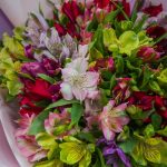 Альстромерия – 25 шт.дизайнерская упаковка и атласная лента – 1 шт.