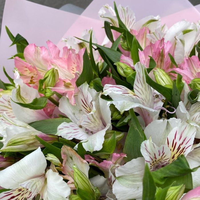 Монобукет из 15 альстромерий бело-розовый