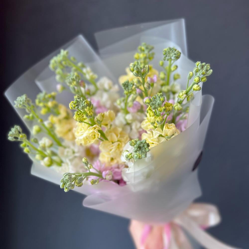 Маттиола – 15 шт.Атласная лента – 1 шт.декоративная упаковка – 1 шт.