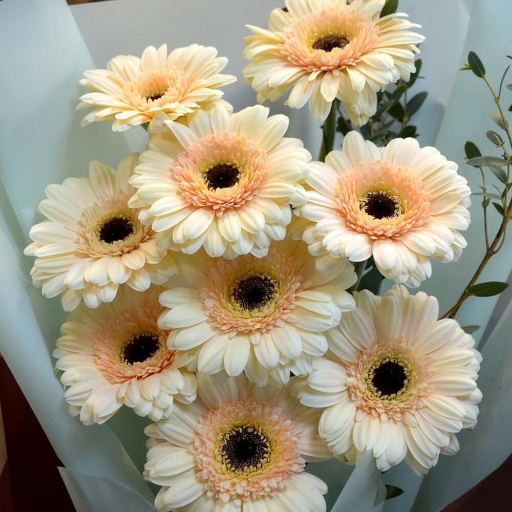 Оригинальный и стильный букет из гербер в оригинальной упаковке .Элегантный букет из оранжевой герберы – презент, который подчеркнет вашу симпатию к прекрасной виновнице торжества. Оттенок бутонов станет символичным пожеланием богатства, удачи и процветания. Но даже если одариваемая персона не интересуется языком цветов и их значением, яркие и похожие на ласковое весеннее солнышко герберы, точно поднимут ей настроение. Поскольку цветок устойчив в срезе, радовать своим видом он будет до 3 недель!В составе букета: оранжевая гербера 9 шт., оригинальная упаковка букета.