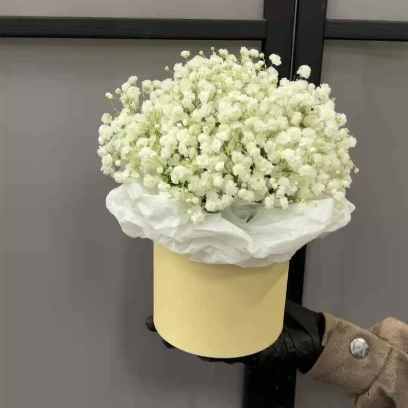 Гипсофила – 5 шт.Коробка шляпная – 1 шт.Тишью – 1 шт.Оазис флористический – 1 шт.