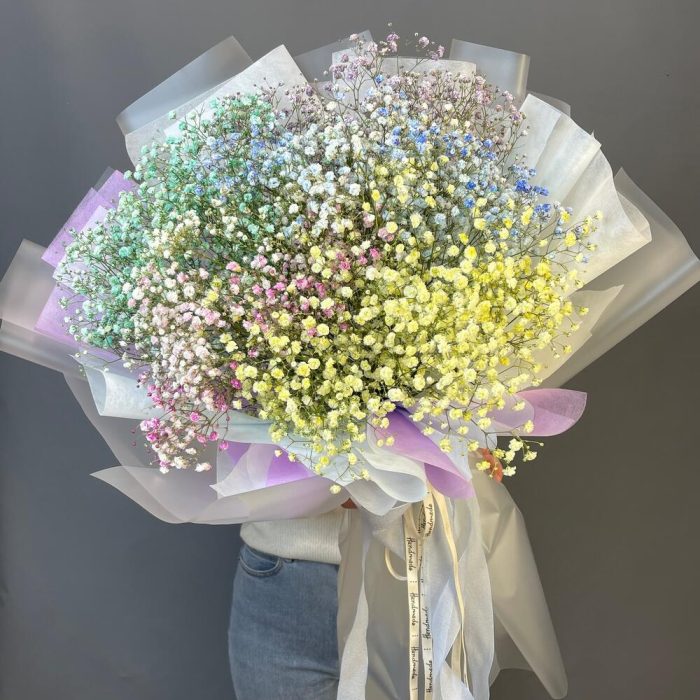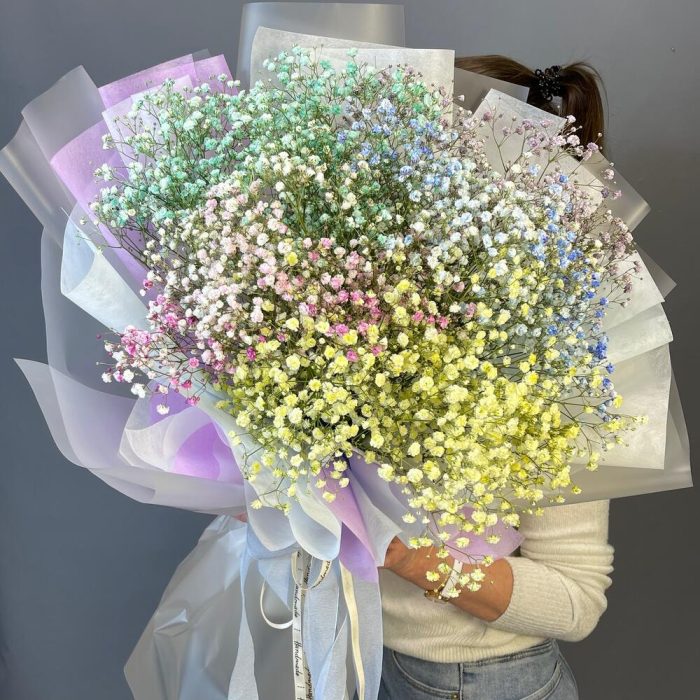 Букет с разноцветной гипсофилой «Радужное облачко»