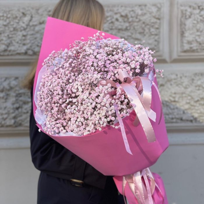 Гипсофила – 13 шт.Лента – 3 шт.Тишью – 3 шт.Упаковка дизайнерская – 1 шт.