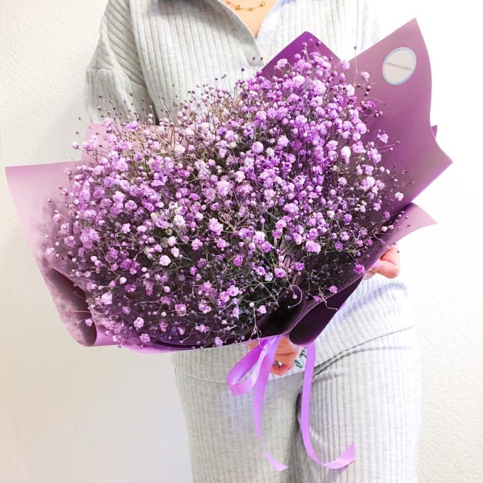 Гипсофила – 7 шт.Упаковка корейская пленка – 2 шт.Лента атласная – 1 шт.