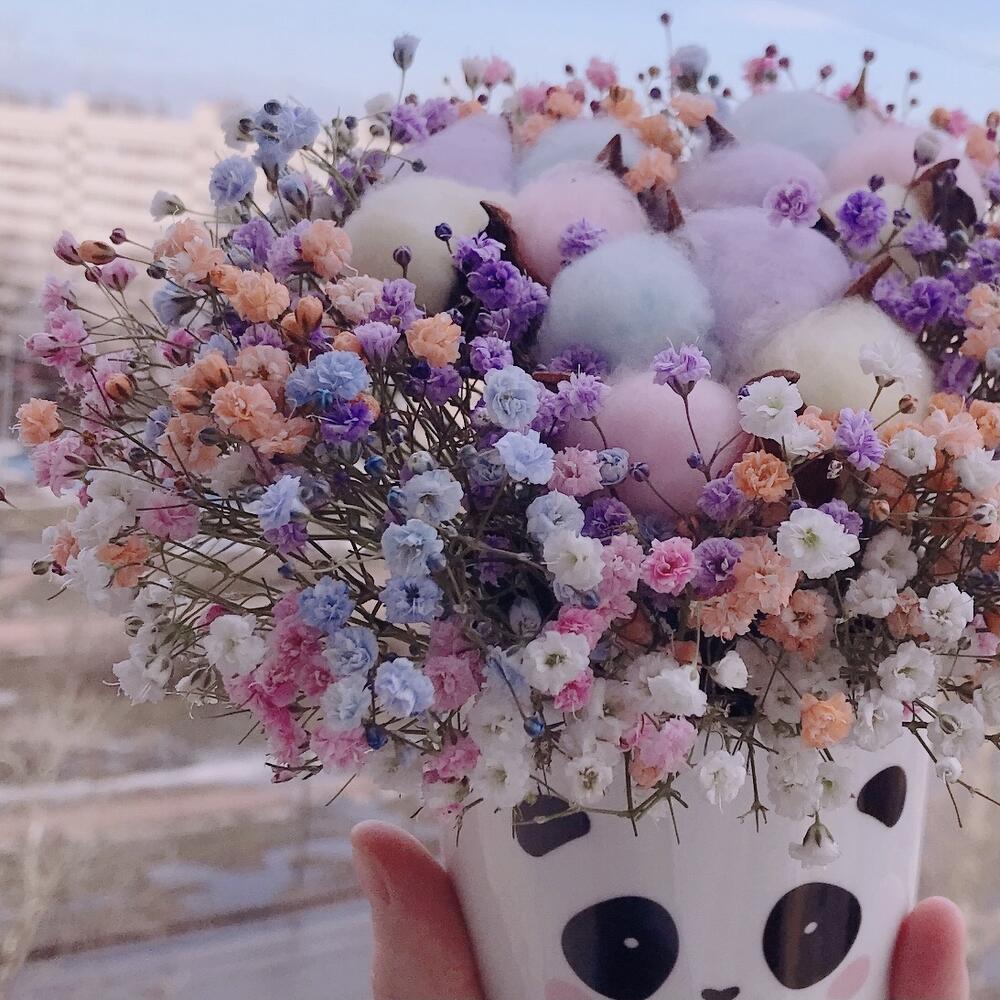 Очаровательная композиция из изысканных свежих цветов.Наполнена множеством соцветий радужной гипсофилы с разноцветным хлопком. Собрана в милом кашпо из керамики.Композиция из гипсофилы – необычный подарок, который удивит своей невероятной стойкостью, при правильном и простом уходе. ❤ Ставить композицию в прохладном месте, избегая отопительных приборов и прямых солнечных лучей. ❤ Подливать немного воды в серединку. Гипсофила не вянет, а становится сухоцветом, сохраняя свой вид. Поэтому композиция продолжит радовать ещё очень долго! Почему выбирают нас? – Работаем на качество. – Бережно упакуем в транспортировочную пленку, чтобы защитить во время доставки от любых погодных условий. – Приложим инструкцию, как правильно ухаживать за цветамиСохраняйте товар в подборках, чтобы не потерять