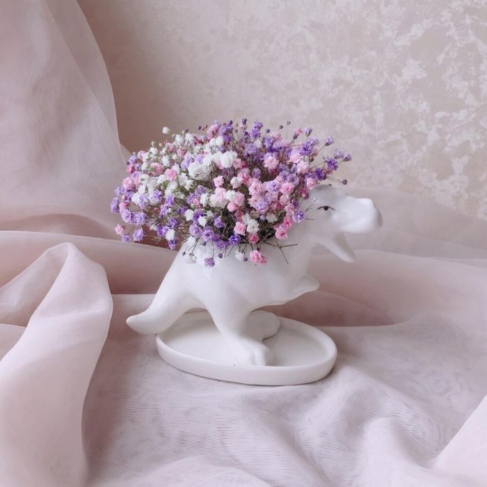 Радужная гипсофила в кашпо из керамики «Лисичка»