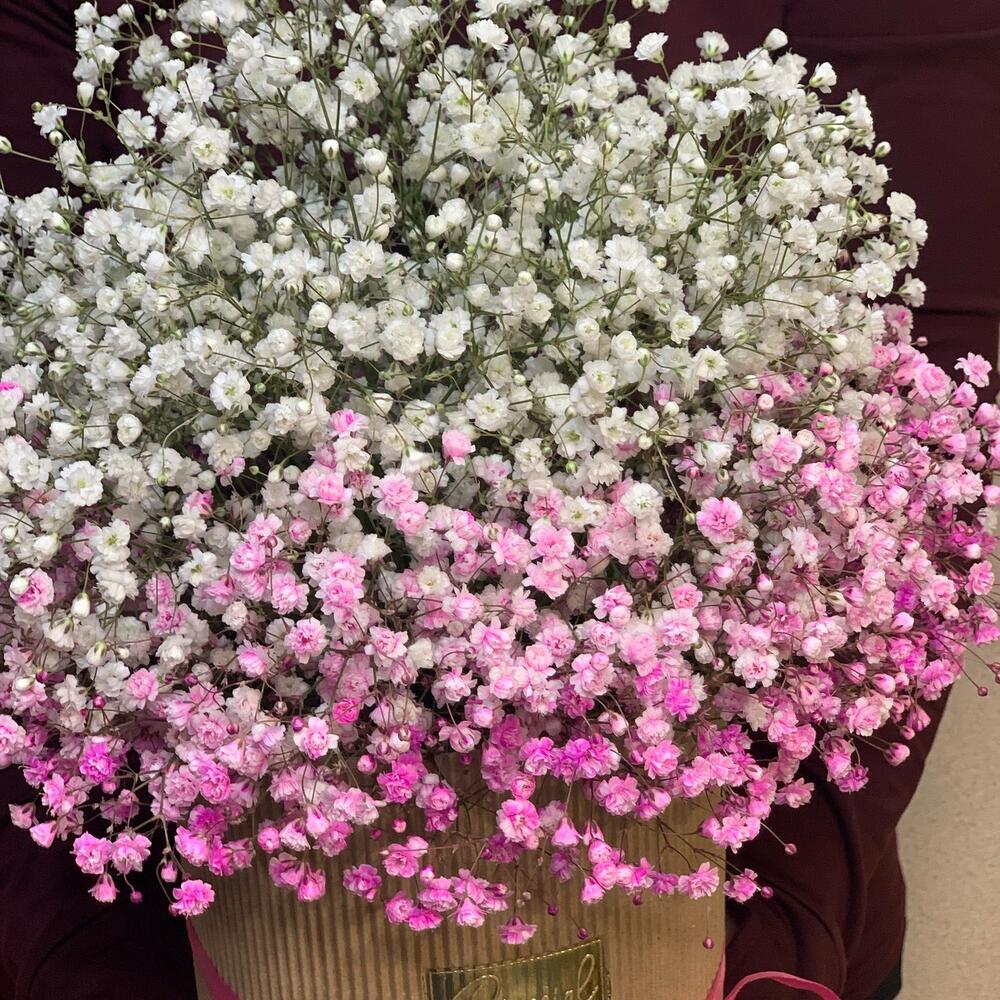 Розовое облако гипсофилы в крафтовой коробке