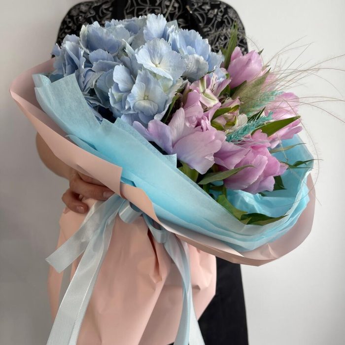 Букет из гортензии ,пиона ,тюльпана ,французская роза