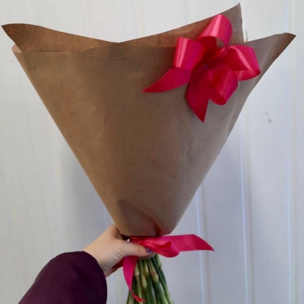 гвоздика розовая одноголовая – 25 шт.подарочная крафт-бумага с бантом – 1 шт.
