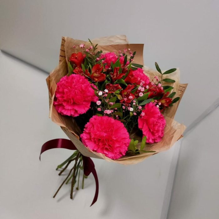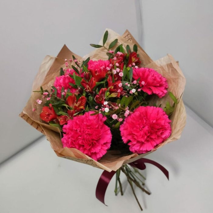 Букет из диантусов малиновых с альстромерией