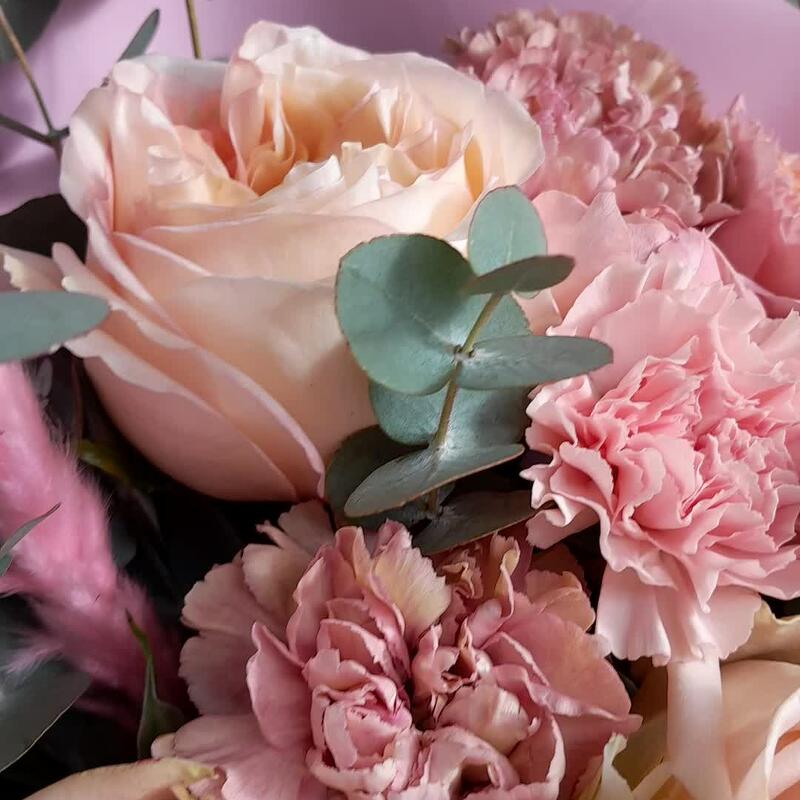 Букет с пионовидными розами и диантусами