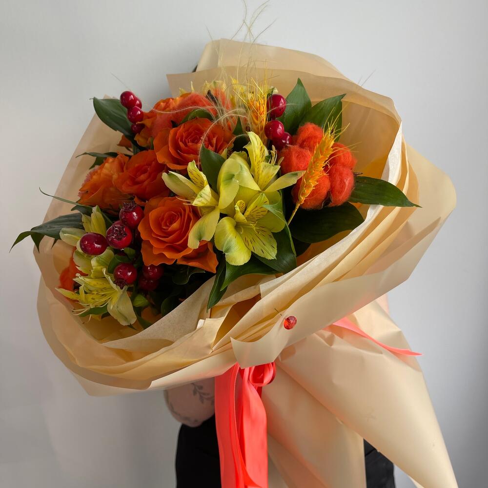 Уважаемые покупатели! Пожалуйста обратите ваше внимание на размер букета при заказе! Он учитывается вместе с упаковкой Чтобы наши прекрасные букеты дольше радовали получателя рекомендуем вам:⭐Обновить срез букета перед тем, как поставить его в воду⭐Ставить цветы в прохладную проточную воду ⭐Меняйте воду в вазу каждый день⭐Не забывайте подрезать цветы, перед тем, как ставить их в воду⭐Не ставить у отопительных приборов и на сквозняке Фирменный стиль наших букетов разработан специально так, чтобы упаковку не нужно было снимать, так как она придаёт целостность букету и прекрасно держится в вазе