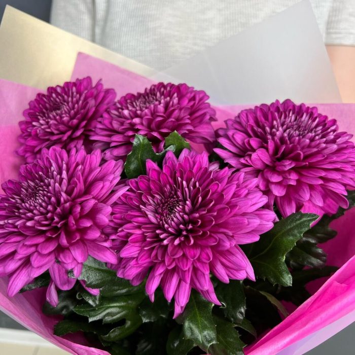 Хризантема одноголовая – 5 шт.Крафт упаковка – 1 шт.