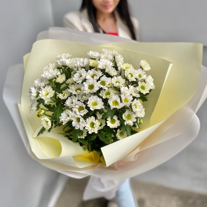 Хризантема кустовая – 7 шт.Лента атласная – 2 шт.Упаковка дизайнерская – 5 шт.