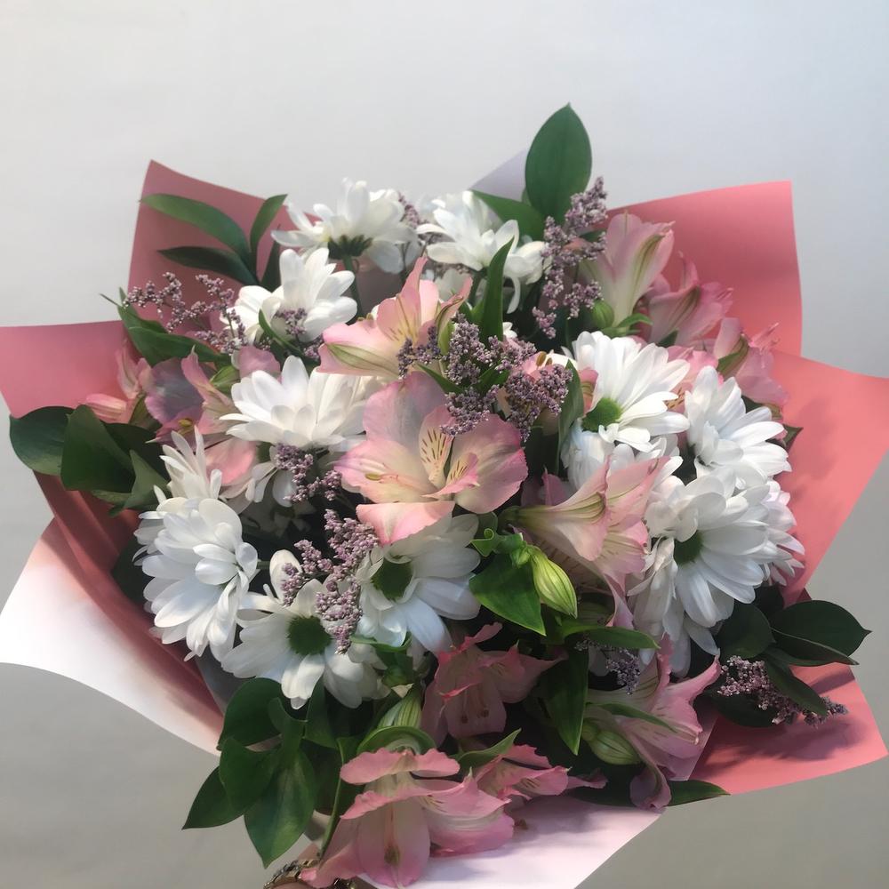 Букет с кустовой хризантемой и альстромерией