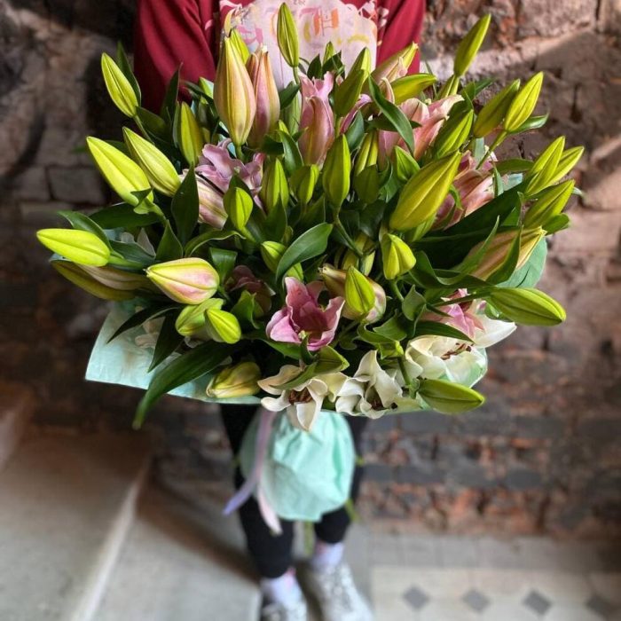 Букет из 19 белых и розовых лилий “Авеню”