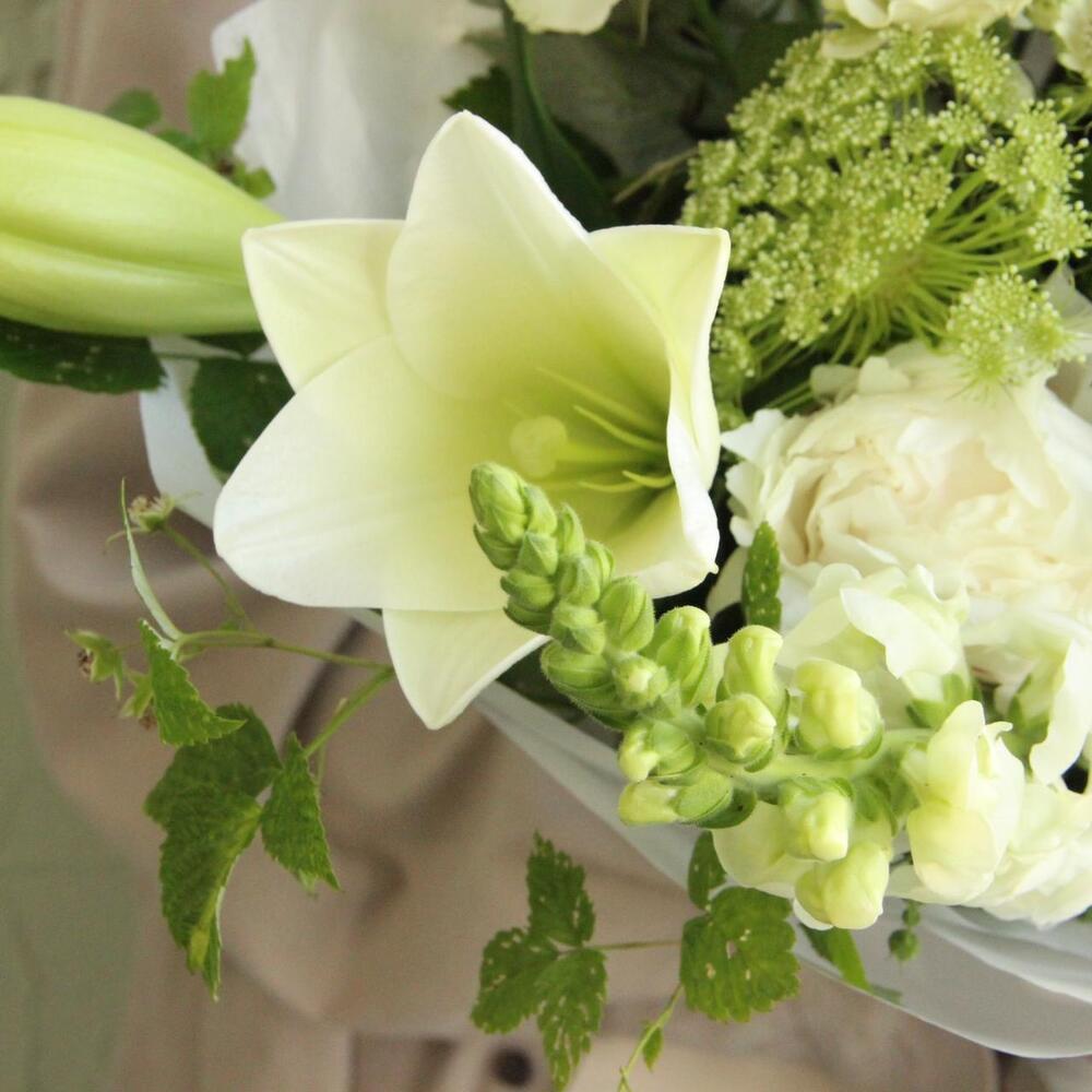 Лилия лонги – 2 шт.Амми – 3 шт.Лизиантус – 3 шт.Львиный зев – 3 шт.Ветки малины – 4 шт.Фисташка – 2 шт.Астранция – 2 шт.Упаковка – 1 шт.Лента атласная – 1 шт.Пион – 3 шт.