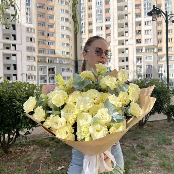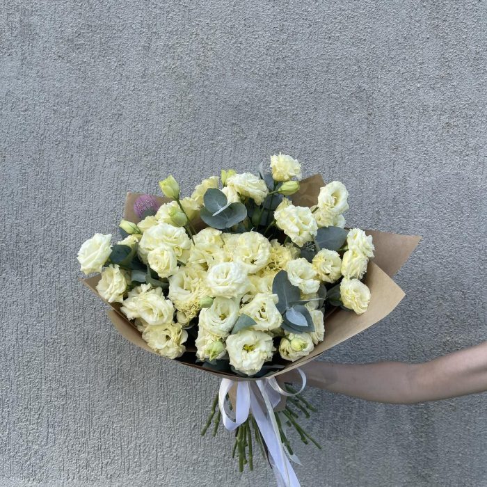 Монобукет из эустомы – это нежный и воздушный букет, созданный специально для того, чтобы подчеркнуть красоту и изящество этого прекрасного цветка. В букете используется эустома и немного эвкалипта, что придает ему особую элегантность и очарование.