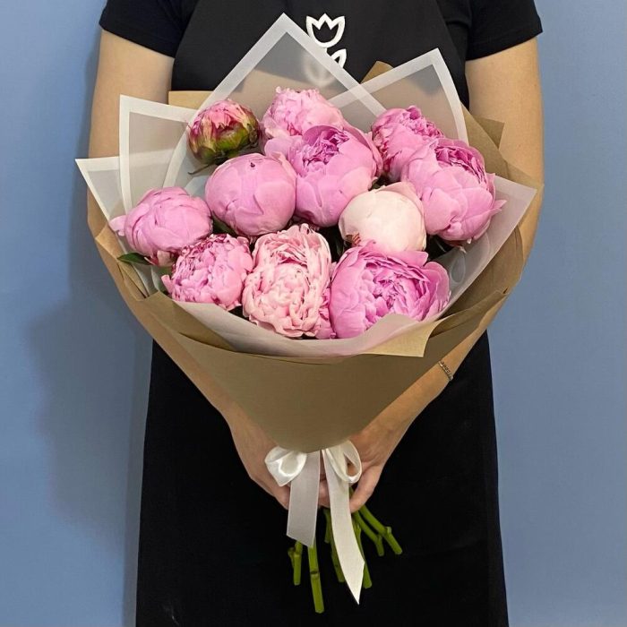 Букет 11 ароматных пионов в крафте
