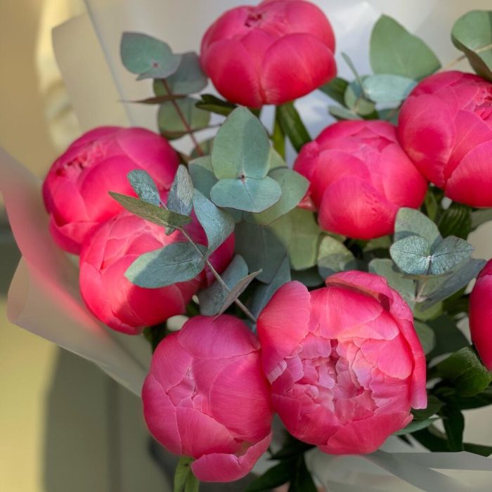 Букет из пионов с эвкалиптом