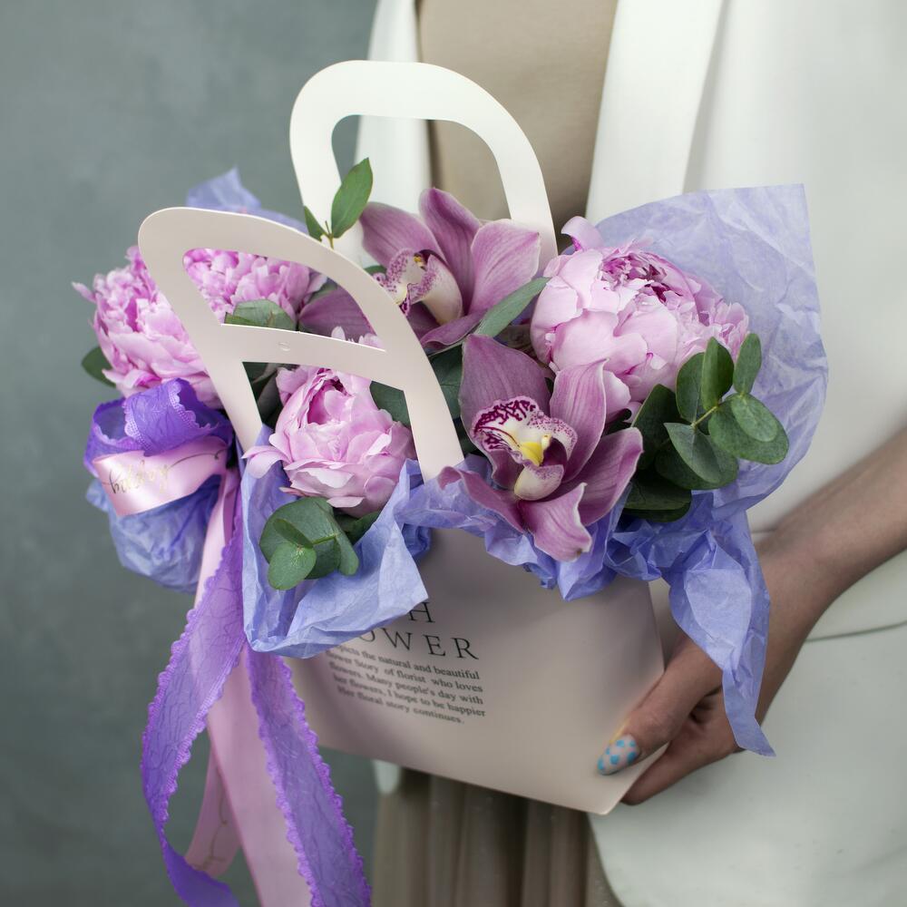 Пион – 3 шт.Эвкалипт – 3 шт.орхидея – 2 шт.