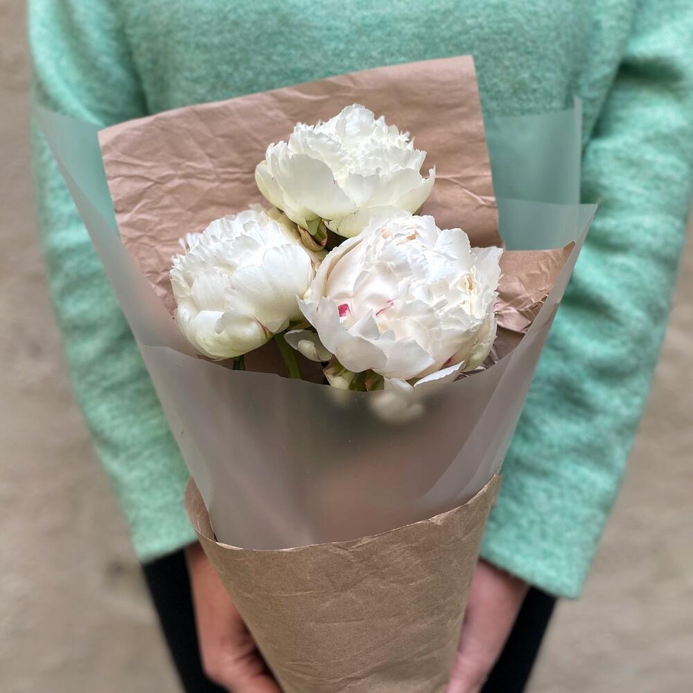 Аккуратный букет из пионов корал шарм 7 шт / 1367 id