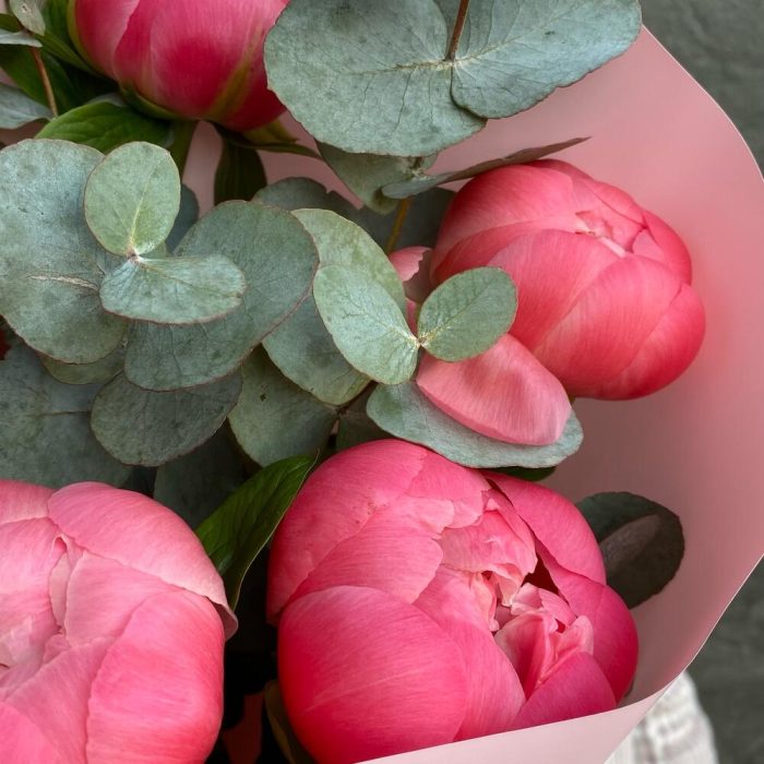 Монобукет «Пионы и эвкалипт»