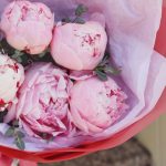 Букет с пионовидными тюльпанами,пионовидной розой и пионами