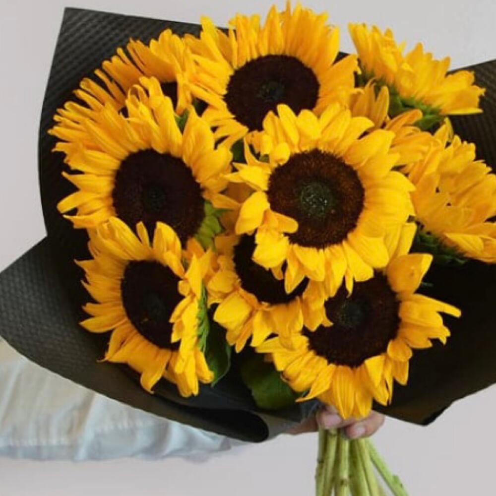 Подсолнух – 11 шт.Упаковка дизайнерская – 1 шт.Лента атласная – 2 шт.Открытка – 1 шт.инструкция по уходу за цветами – 1 шт.хорошее настроение – 100 шт.коробка переноска – 1 шт.Кризал – 1 шт.