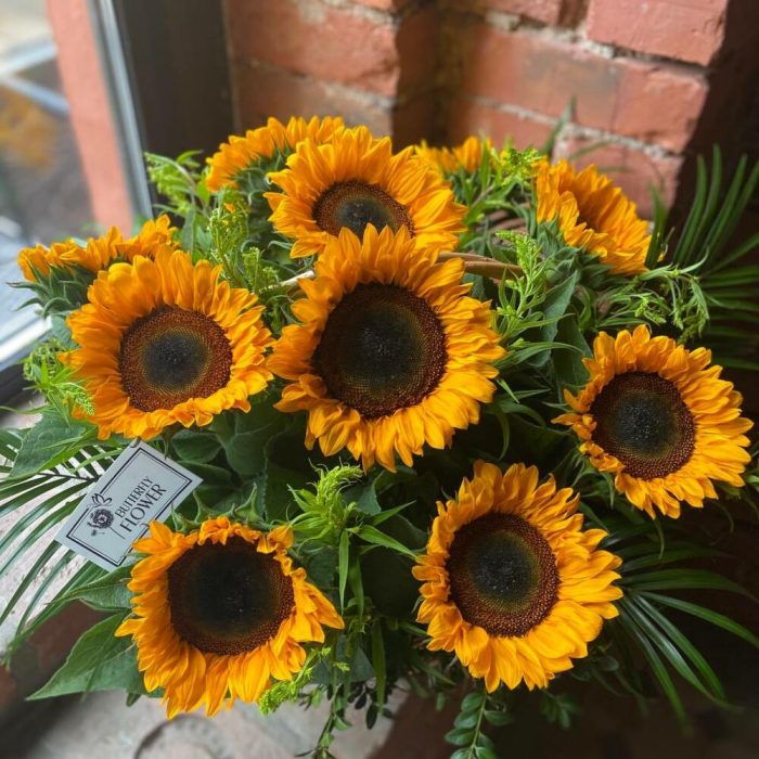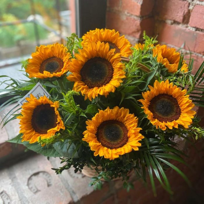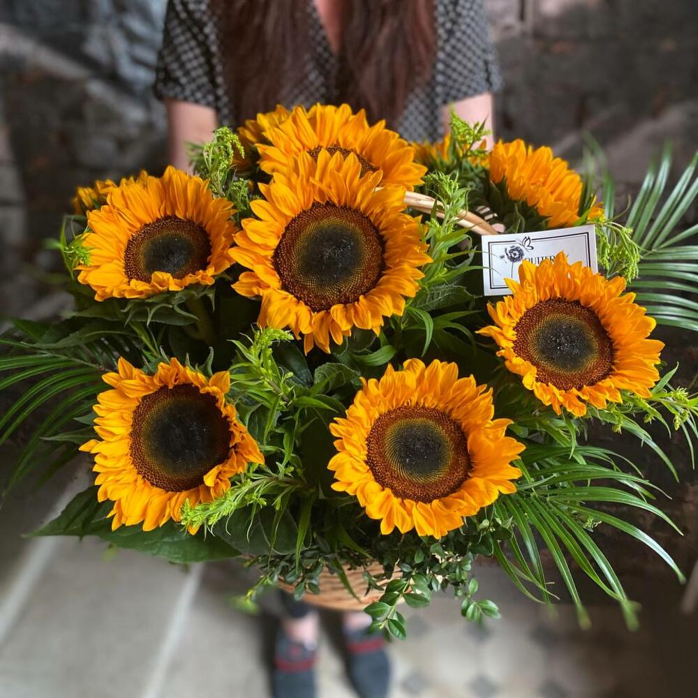 Корзина – 1 шт.Солидаго – 10 шт.Зелень – 1 шт.Подсолнух – 11 шт.