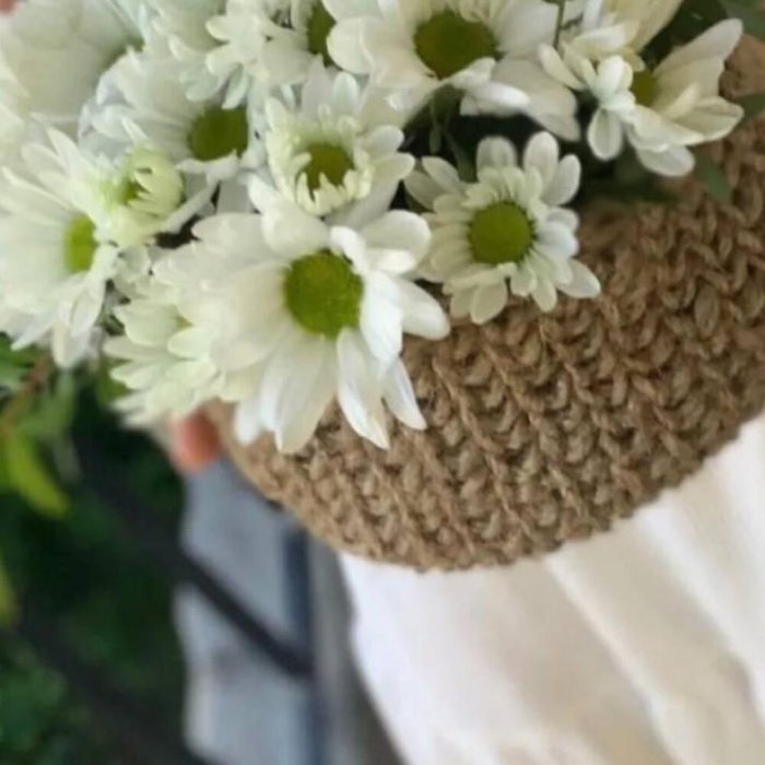 Милейшая корзинка , вязанная ….нежная … да ещё и с ромашками Это идеально , если вы хотите по настоящему удивить