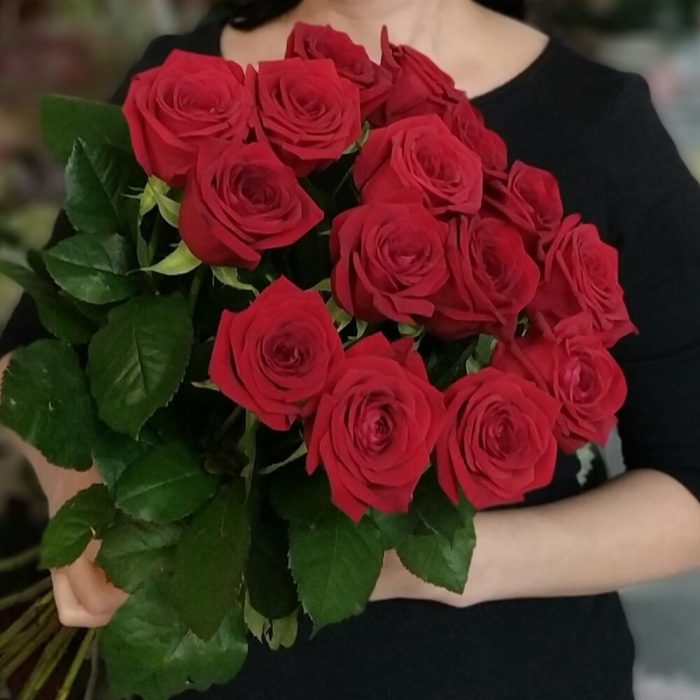 Метки: 15 роз, Красные розы, от 2000 до 3000 руб, Роза 50 см