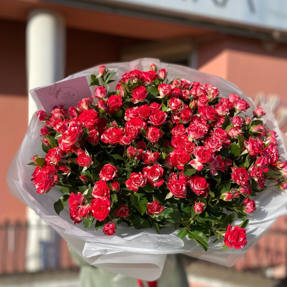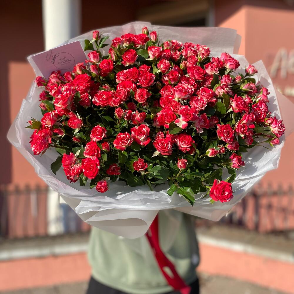 Кустовая роза – 25 шт. Тишью – 1 шт. Упаковка дизайнерская – 1 шт.