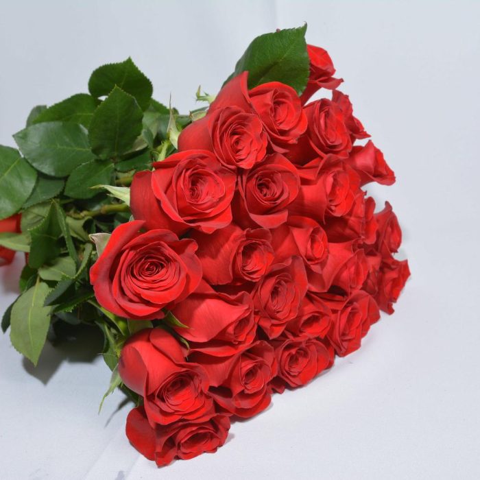 Красная роза эквадор – 25 шт.Пленка прозрачная – 1 шт.Лента атласная – 1 шт.