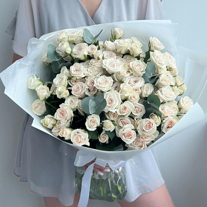 Роза кустовая – 25 шт.Эвкалипт – 4 шт.