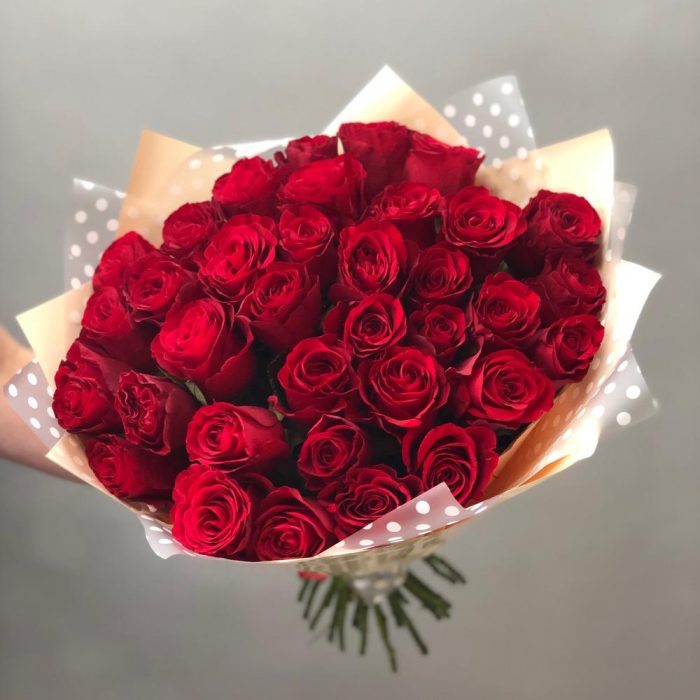 Роза красная – 35 шт.Крафт – 3 шт.
