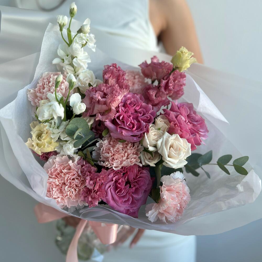 Категорий: Гвоздики, Кустовые розы, Лизиантусы, Пионовидные розы, Розы
