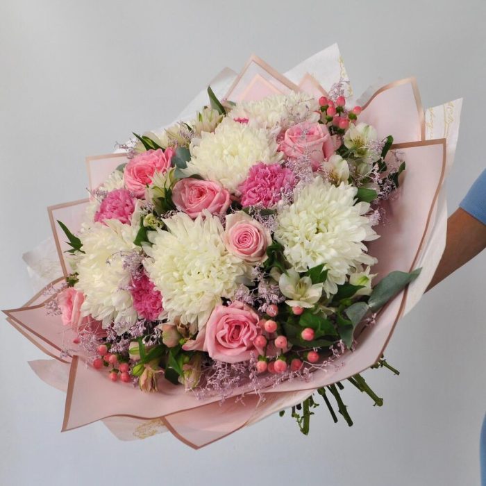 Категорий: Альстромерии, Гвоздики, Пионовидные розы, Розы, Хризантемы