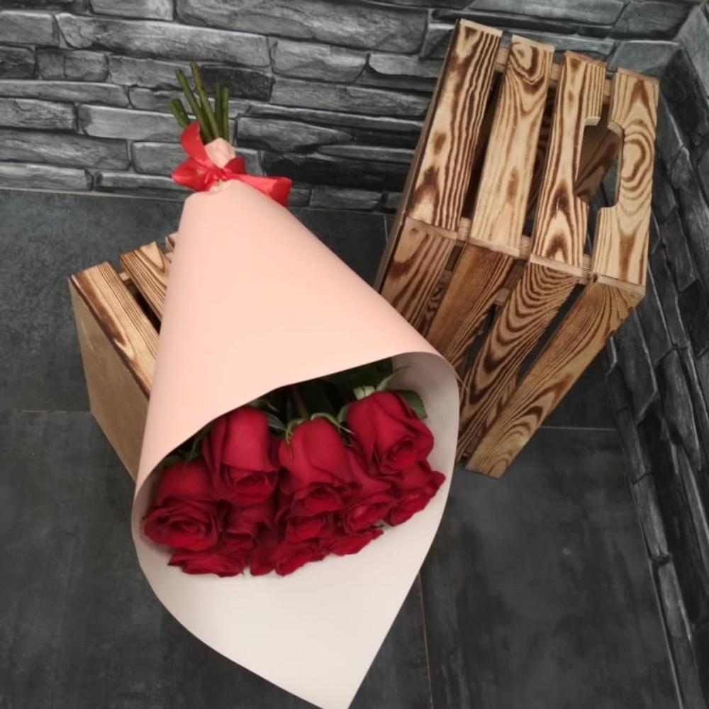 Роза Эквадор – 11 шт.Упаковка дизайнерская – 1 шт.Лента атласная – 1 шт.
