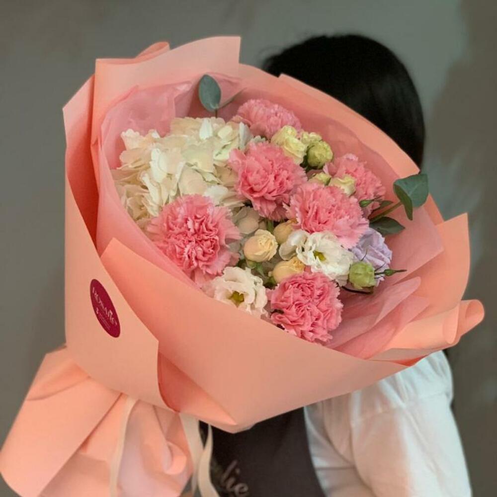 Гвоздики, Пионовидные розы, Розы