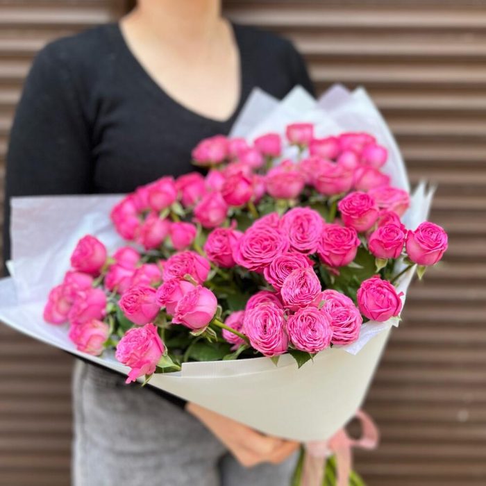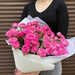 Лента атласная – 1 шт.Пленка матовая – 2 шт.Пионовидная роза кустовая – 15 шт.