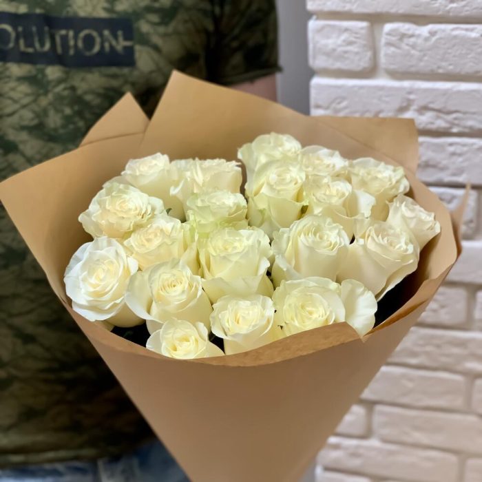 Букет с 25 пионовидными кустовыми розами премиум 80 см