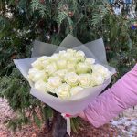 Букет из 25 белых роз 35-40 см (Кения) под ленту