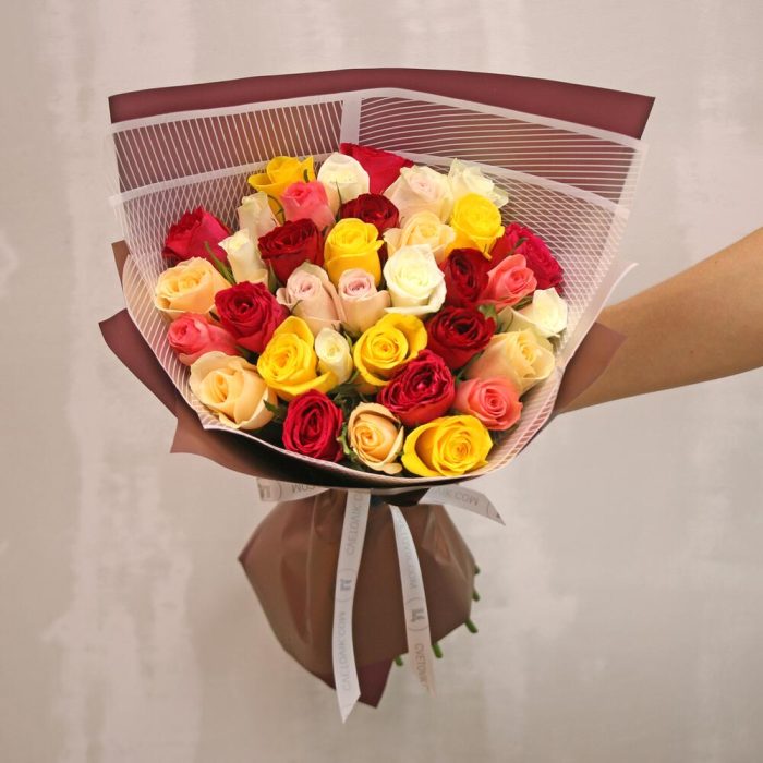 Букет из 35 роз микс 35-40 см (Кения) в упаковке