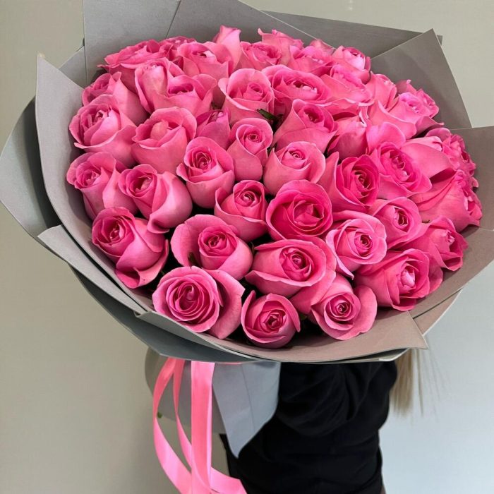 Букет из 45 розовых роз в упаковке