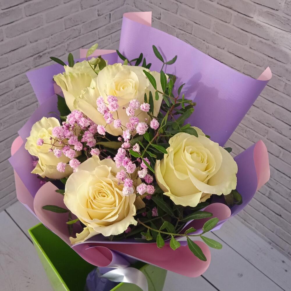 Букет из 5 Эквадорских роз с гипсофилой