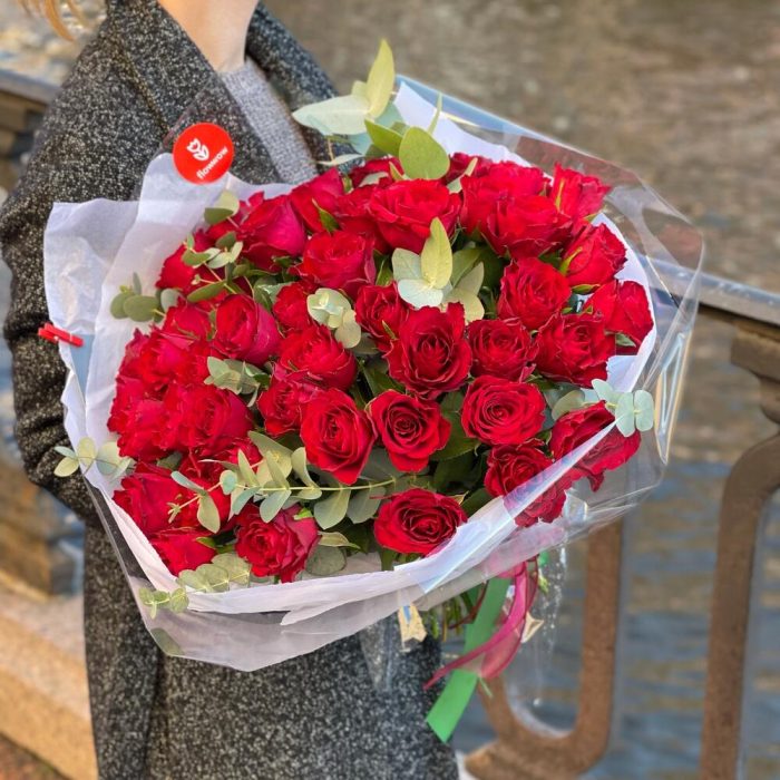 Эвкалипт – 3 шт.Роза – 51 шт.Упаковка дизайнерская – 1 шт.