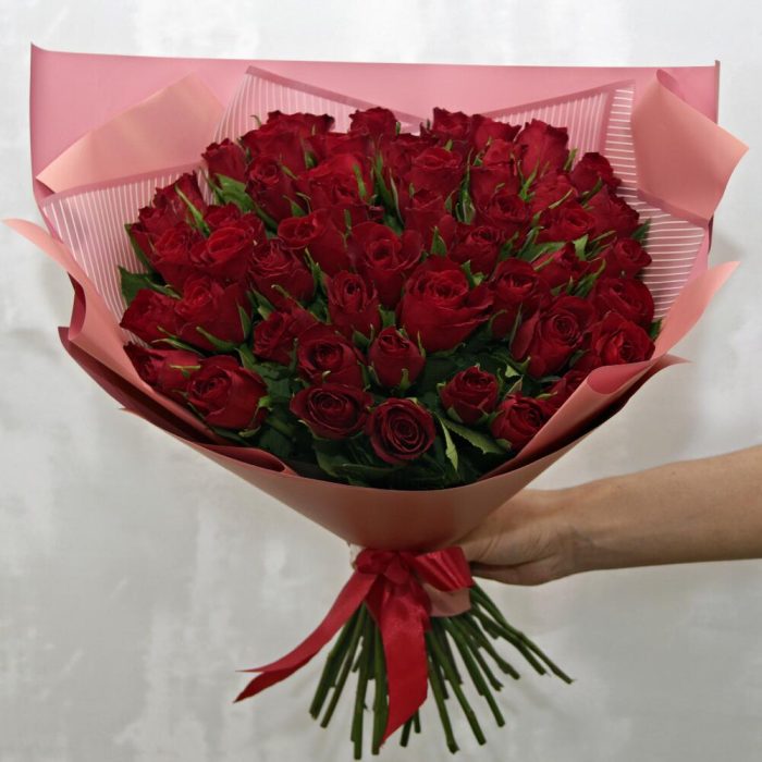 Букет из 51 красной розы 35-40 см (Кения) в стильной упаковке