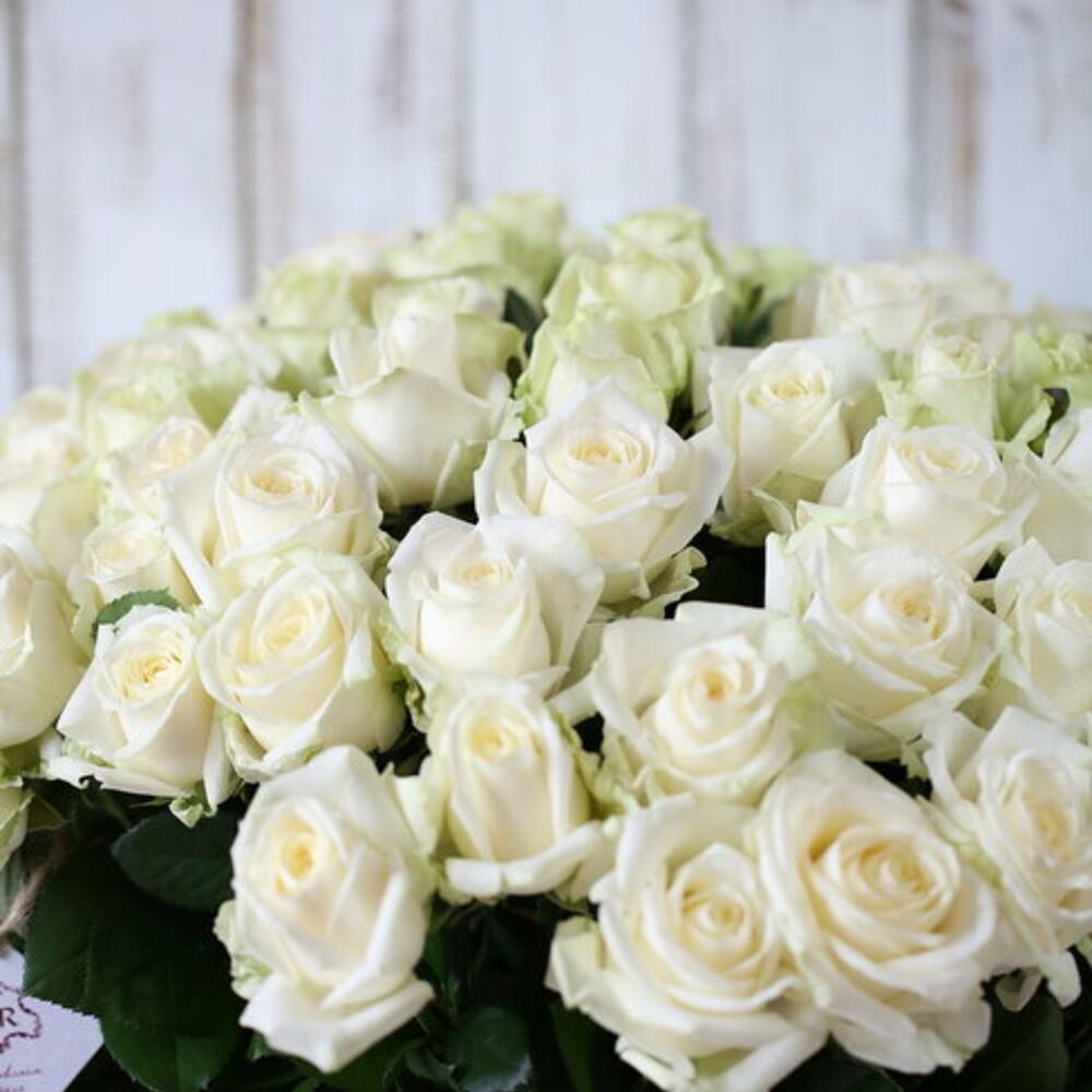 белая роза 55 см – 51 шт.Лента – 1 шт.